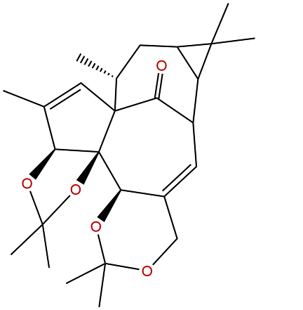 SMILES: O=C1[C@@]2(C=C(C)C3OC(C)(C)O4)C34C(OC(C)(C)OC5)C5=C[C@@H]1[C@@H](C6(C)C)[C@@H]6CC2C