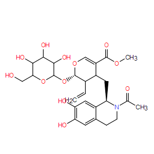 SMILES: COC(C1=COC(OC2OC(CO)C(O)C(O)C2O)C(C=C)C1CC1N(C(=O)C)CCC2=CC(=C(C=C12)O)O)=O