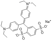 SMILES: | CC/[N+](CC)=C1C=C/C(C=C/1)=C(C2=CC=C(N(CC)CC)C=C2)\C3=CC(S(=O)([O-])=O)=CC=C3S(=O)([O-])=O.[Na+] |