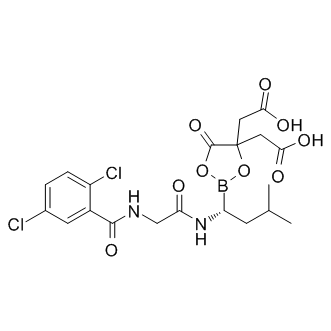 SMILES: | B1(OC(=O)CC(O1)(CC(=O)O)C(=O)O)[C@H](CC(C)C)NC(=O)CNC(=O)C2=C(C=CC(=C2)Cl)Cl |