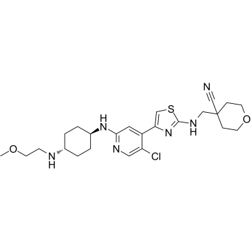 Chemical Name: | 4-[[[4-[5-Chloro-2-[[4-(2-methoxyethylamino)cyclohexyl]amino]pyridin-4-yl]-1,3-thiazol-2-yl]amino]methyl]oxane-4-carbonitrile |