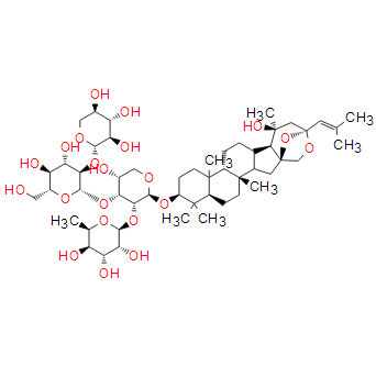 SMILES: | C[C@]([C@]1([H])CC2)(CC[C@]3([H])[C@@]1(CC[C@H](O[C@@](OC[C@H](O)[C@@H]4O[C@@](O[C@H](CO)[C@@H](O)[C@@H]5O)([H])[C@@H]5O[C@@](OC[C@@H](O)[C@@H]6O)([H])[C@@H]6O)([H])[C@@H]4O[C@@](O[C@@H](C)[C@H](O)[C@H]7O)([H])[C@@H]7O)C3(C)C)C)[C@@]8(CO9)[C@@]2([H])[C@]( |