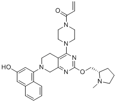 Chemical Name: | (S)-1-(4-(7-(3-hydroxynaphthalen-1-yl)-2-((1-methylpyrrolidin-2-yl)methoxy)-5,6,7,8-tetrahydropyrido[3,4-d]pyrimidin-4-yl)piperazin-1-yl)prop-2-en-1-one |