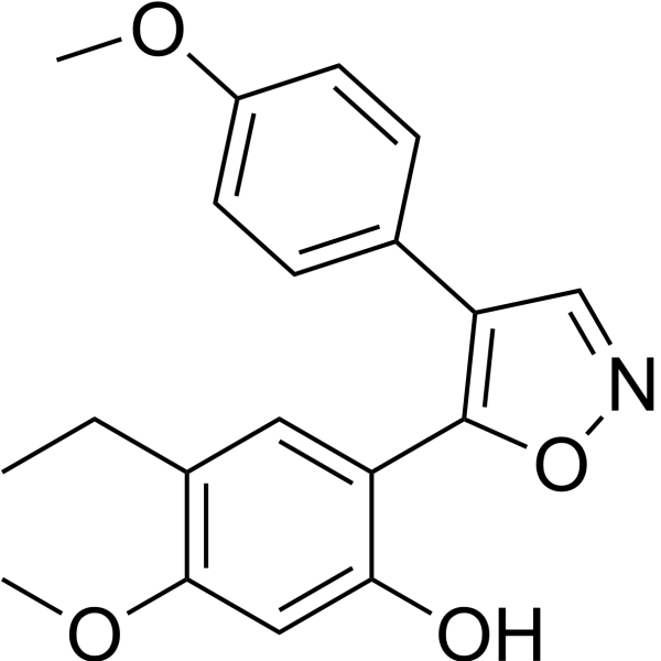 Synonyms: | kribb 3;4-ethyl-3-methoxy-6-[4-(4-methoxyphenyl)-2H-1,2-oxazol-5-ylidene]cyclohexa-2,4-dien-1-one;KRIBB3 (5-(5-Ethyl-2-hydroxy-4-methoxyphenyl)-4-(4-methoxyphenyl)isoxazole) |