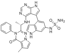 Chemical Name: | N-[4-(4-{[(1S)-1-(5-Methyl-4-oxo-3-phenyl-3,4-dihydropyrrolo[2,1-f][1,2,4]triazin-2-yl)ethyl]amino}-7H-pyrrolo[2,3-d]pyrimidin-5-yl)-1H-indol-6-yl]sulfamide |