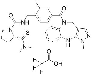 Chemical Name: | (S)-2-(Dimethylcarbamothioyl)-N-(2-methyl-4-(1-methyl-1,4,5,10-tetrahydrobenzo[b]pyrazolo[3,4-e][1,4]diazepine-5-carbonyl)benzyl)pyrrolidine-1-carboxamide 2,2,2-trifluoroacetate |