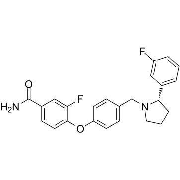 SMILES: | O=C(C1C=C(F)C(OC2C=CC(CN3CCC[C@H]3C3C=C(F)C=CC=3)=CC=2)=CC=1)N |
