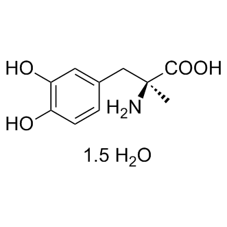 Description: | L-(-)-α-Methyldopa hydrate is an alpha-adrenergic agonist (selective for α2-adrenergic receptors) psychoactive drug used as a sympatholytic or antihypertensive.Methyldopa is an alpha-adrenergic agonist (selective for α2-adrenergic receptors) psychoactive drug used as a sympatholytic or antihypertensive. Its use is now mostly deprecated following the introduction of alternative safer classes of agents. However, it continues to have a role in otherwise difficult to treat hypertension and gestational hypertension (also known as pregnancy-induced hypertension (PIH)). Methyldopa has a dual mechanism of action. It is a competitive inhibitor of the enzyme DOPA decarboxylase, also known as aromatic L-amino acid decarboxylase, which converts L-DOPA into dopamine. Dopamine is a precursor for norepinephrine (noradrenaline) and subsequently epinephrine (adrenaline). This inhibition results in reduced dopaminergic and adrenergic neurotransmission in the peripheral nervous system. This effect may lower blood pressure and cause central nervous system effects such as depression, anxiety, apathy, anhedonia, and parkinsonism. It is converted to α-methylnorepinephrine by dopamine beta-hydroxylase (DBH). α-methylnorepinephrine is an agonist of presynaptic central nervous system α2-adrenergic receptors. Activation of these receptors in the brainstem appears to inhibit sympathetic nervous system output and lower blood pressure. This is also the mechanism of action of clonidine. |