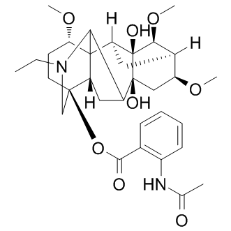 SMILES: | [H][C@]([C@@]([C@H]([C@@]1([H])[C@@H](OC)C2)OC)(O)[C@@]2(O)[C@H]3C4)(C1)[C@@]5([C@@H]3N6CC)[C@@]4([H])[C@@](C6)(OC(C7=C(NC(C)=O)C=CC=C7)=O)CC[C@@H]5OC |