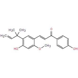 SMILES: | O=C(C1=CC=C(O)C=C1)/C=C/C2=CC(C(C)(C)C=C)=C(O)C=C2OC |
