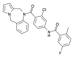 SMILES: | O=C(C1=CC=C(NC(C2=CC(F)=CC=C2C)=O)C=C1Cl)N(C3)C4=CC=CC=C4CN5C3=CC=C5 |