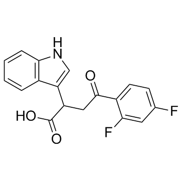SMILES: O=C(C(C1C2C=CC=CC=2NC=1)CC(=O)C1C(F)=CC(F)=CC=1)O