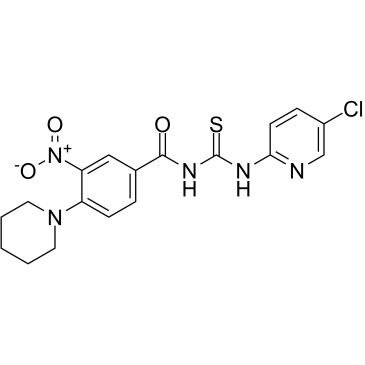 SMILES: | O=C(C1C=C([N+](=O)[O-])C(N2CCCCC2)=CC=1)NC(=S)NC1C=CC(Cl)=CN=1 |