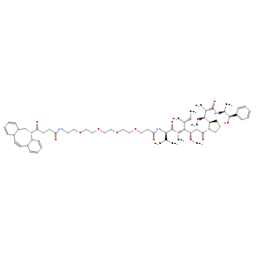 MMAE-(PEG)4-DBCO is made by MMAE conjugated to DBCO-(PEG)4 linker. Monomethyl auristatin E (MMAE), a potent tubulin inhibitor, is a toxin payload in antibody drug conjugate.