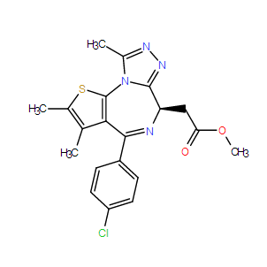 SMILES: | CC1C2C(C3C=CC(Cl)=CC=3)=N[C@@H](CC(OC)=O)C3N(C=2SC=1C)C(C)=NN=3 |