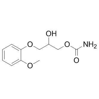 Description: | Methocarbamol is a central muscle relaxant used to treat skeletal muscle spasms.Methocarbamol is the carbamate of guaifenesin, but does not produce guaifenesin as a metabolite, because the carbamate bond is not hydrolyzed metabolically; metabolism is by Phase I ring hydroxylation and O-demethylation, followed by Phase II conjugation. All the major metabolites are unhydrolyzed carbamates. Methocarbamol is used as an adjunct in the symptomatic treatment of musculoskeletal conditions associated with painful muscle spasm. |