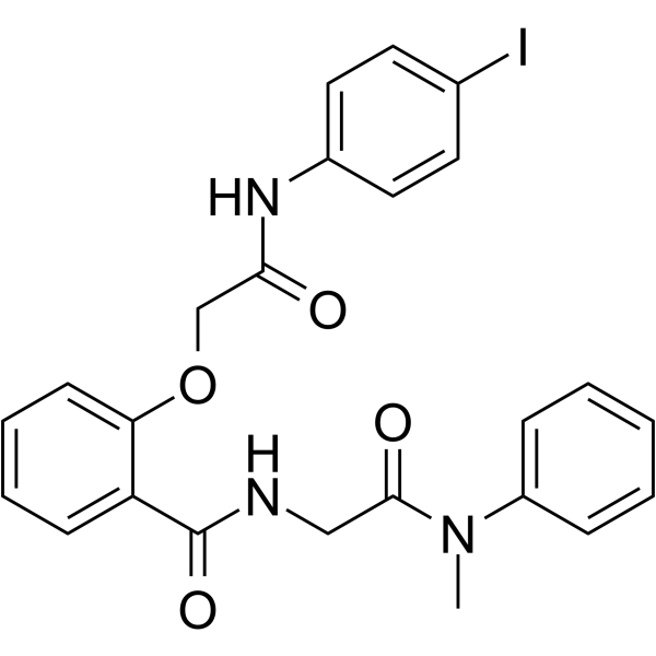 SMILES: | IC1C=CC(NC(=O)COC2C=CC=CC=2C(NCC(N(C)C2C=CC=CC=2)=O)=O)=CC=1 |