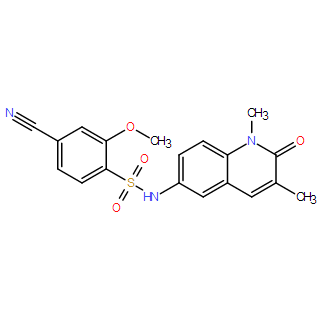SMILES: | COC1=CC(C#N)=CC=C1S(NC2=CC=C(N(C)C(C(C)=C3)=O)C3=C2)(=O)=O |