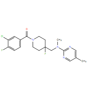 SMILES: | O=C(C1=CC=C(F)C(Cl)=C1)N2CCC(CN(C3=NC=C(C)C=N3)C)(F)CC2 |