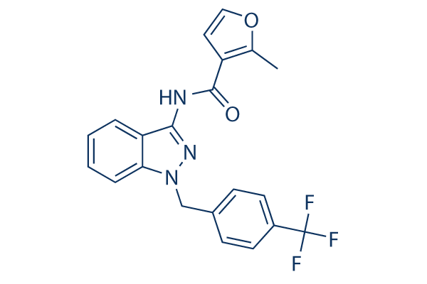 Synonyms: | 1ER2O3UZ4W;2-Methyl-N-(1-((4-(trifluoromethyl)phenyl)methyl)-1H-indazol-3-yl)-3-furancarboxamide;s2962;DB14995;CC=1OC=CC1C(=O)NC1=NN(C2=CC=CC=C12)CC1=CC=C(C=C1)C(F)(F)F;3-Furancarboxamide, 2-methyl-N-(1-((4-(trifluoromethyl)phenyl)methyl)-1H-indazol-3-yl)- |