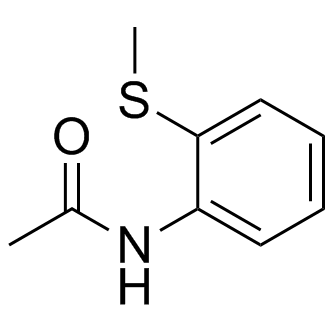 Description: | N-[2-(methylsulfanyl) phenyl]acetamide. For the detailed information of NSC-41589, the solubility of NSC-41589 in water, the solubility of NSC-41589 in DMSO, the solubility of NSC-41589 in PBS buffer, the animal experiment (test) of NSC-41589, the cell expriment (test) of NSC-41589, the in vivo, in vitro and clinical trial test of NSC-41589, the EC50, IC50,and affinity,of NSC-41589, For the detailed information of NSC-41589, the solubility of NSC-41589 in water, the solubility of NSC-41589 in DMSO, the solubility of NSC-41589 in PBS buffer, the animal experiment (test) of NSC-41589, the cell expriment (test) of NSC-41589, the in vivo, in vitro and clinical trial test of NSC-41589, the EC50, IC50,and affinity,of NSC-41589, Please contact DC Chemicals. |