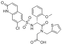 Chemical Name: | (R)-N-(2-((7-chloro-2-oxo-1,2-dihydroquinoline)-6-sulfonamido)-2-(2-methoxyphenyl)acetyl)-N-(thiophen-2-ylmethyl)glycine |