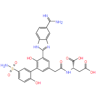 Chemical Name: | (S)-2-(2-(5-(5-carbamimidoyl-1H-benzo[d]imidazol-2-yl)-2',6-dihydroxy-5'-sulfamoylbiphenyl-3-yl)acetamido)succinic acid |