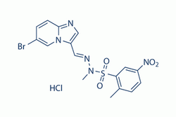 PIK-75 is a DNA-PK and PI3K inhibitor, which inhibits DNA-PK, p110α and p110γ with IC50s of 2, 5.8 and 76 nM, respectively. PIK-75 inhibits p110α >200-fold more potently than p110β (IC50=1.3 μM). |