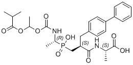 Chemical Name: | ((2S)-3-([1,1'-biphenyl]-4-yl)-2-((hydroxy((1R)-1-(((1-(isobutyryloxy)ethoxy)carbonyl)amino)ethyl)phosphoryl)methyl)propanoyl)-L-alanine |