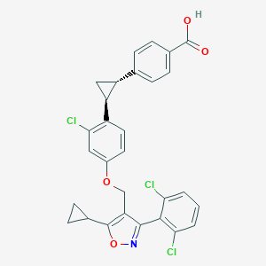 SMILES: | C1CC1C2=C(C(=NO2)C3=C(C=CC=C3Cl)Cl)COC4=CC(=C(C=C4)[C@H]5C[C@@H]5C6=CC=C(C=C6)C(=O)O)Cl |