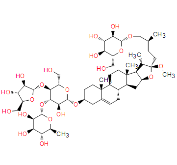 SMILES: | CC1(C(C2C)C(OC2(OC)CCC(C)COC(C(C(O)C3O)O)OC3CO)C4)C4C(CC=C5C6(CCC(OC(OC(CO)C(OC7OC(CO)C(O)C7O)C8OC(OC(C)C(O)C9O)C9O)C8O)C5)C)C6CC1 |