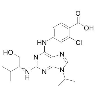 Chemical Name: | 2-chloro-4-[[2-[[(2R)-1-hydroxy-3-methylbutan-2-yl]amino]-9-propan-2-ylpurin-6-yl]amino]benzoicacid |