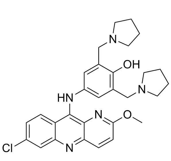 SMILES: | OC1=C(CN2CCCC2)C=C(NC3=C4N=C(OC)C=CC4=NC5=CC(Cl)=CC=C53)C=C1CN6CCCC6 |