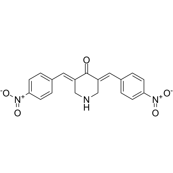 Synonyms: | 4-Piperidinone, 3,5-bis[(4-nitrophenyl)methylene]-, (3E,3E)-;(3E,5E)-3,5-Bis[(4-Nitrophenyl)methylene]-4-piperidinone;4-Piperidinone, 3,5-bis[(4-nitrophenyl)methylene]-, (3E,5E)-;RA-9 UPS inhibitor;RA-9;(3E,5E)-3,5-Bis[(4-nitrophenyl)methylene]-4-piperidinone (ACI) |