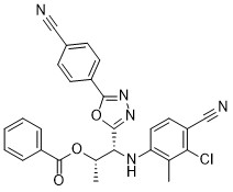 Chemical Name: | (1R,2S)-1-(3-Chloro-4-cyano-2-methylphenylamino)-1-(5-(4-cyanophenyl)-1,3,4-oxadiazol-2-yl)propan-2-yl benzoate |