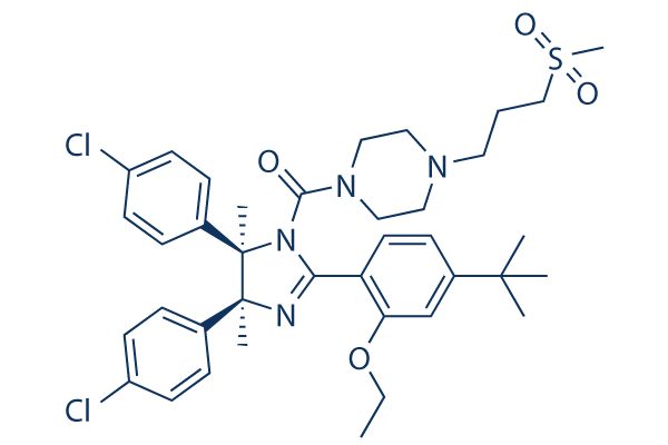 SMILES: | CCOC1=C(C=CC(=C1)C(C)(C)C)C2=N[C@@]([C@@](N2C(=O)N3CCN(CC3)CCCS(=O)(=O)C)(C)C4=CC=C(C=C4)Cl)(C)C5=CC=C(C=C5)Cl |