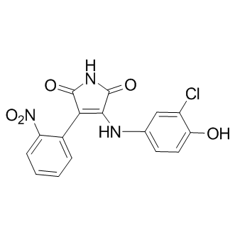 Description: | SB 415286 is a potent and selective cell permeable inhibitor of GSK-3α, with an IC50 of 77.5 nM, and a Ki of 30.75 nM; SB 415286 is equally effective at inhibiting human GSK-3α and GSK-3β. |