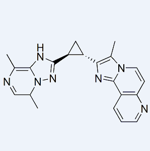 SMILES: | CC1=CN=C(C2=NC(=NN12)[C@@H]3C[C@H]3C4=C(N5C=CC6=C(C5=N4)C=CC=N6)C)C |