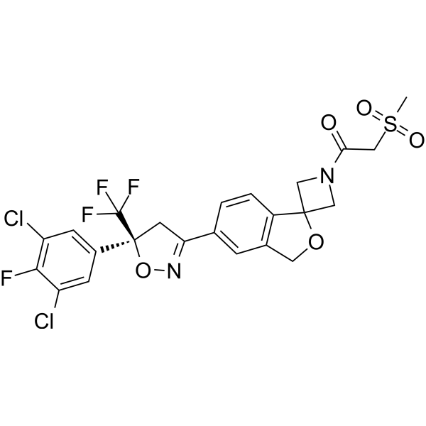 SMILES: | ClC1C(=C(C=C(C=1)[C@]1(C(F)(F)F)CC(C2C=CC3=C(C=2)COC23CN(C(CS(C)(=O)=O)=O)C2)=NO1)Cl)F |