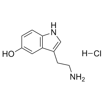 Description: | Serotonin hydrochloride is a monoamine neurotransmitter in the CNS and an endogenous 5-HT receptor agonist. Serotonin hydrochloride is also a catechol O-methyltransferase (COMT) inhibitor with a Ki of 44 μM. |