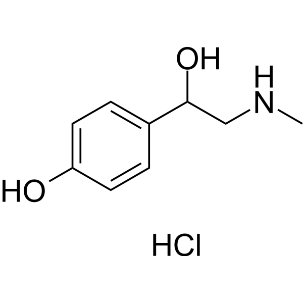 SMILES: | Cl[H].O([H])C([H])(C1C([H])=C([H])C(=C([H])C=1[H])O[H])C([H])([H])N([H])C([H])([H])[H] |