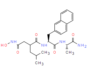 Chemical Name: | N-(R)-[2-(HYDROXYAMINOCARBONYL)METHYL]-4-METHYLPENTANOYL-L-NAPHTHYLALANYL-L-ALANINE AMIDE |