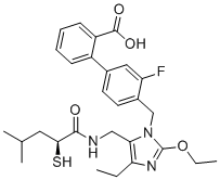 Chemical Name: | (S)-4'-((2-ethoxy-4-ethyl-5-((2-mercapto-4-methylpentanamido)methyl)-1H-imidazol-1-yl)methyl)-3'-fluoro-[1,1'-biphenyl]-2-carboxylic acid |
