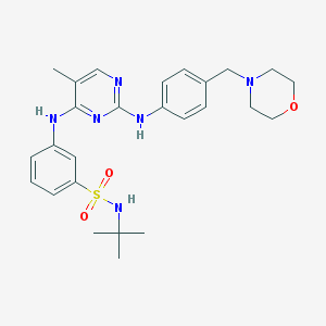 Chemical Name: | N-tert-butyl-3-[[5-methyl-2-[4-(morpholin-4-ylmethyl)anilino]pyrimidin-4-yl]amino]benzenesulfonamide |