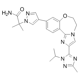 SMILES: | C(N)(=O)C(C)(N1C=C(C2C=C3OCCN4C=C(C5=NC(C)=NN5C(C)C)N=C4C3=CC=2)C=N1)C |