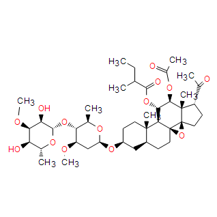 SMILES: | C[C@@]([C@@H]([C@@H](OC(C(C)CC)=O)[C@]1([H])[C@]23C)OC(C)=O)([C@@H]4C(C)=O)[C@]5(CC4)[C@@]1(CC[C@@]2([H])C[C@@H](O[C@@](O[C@H](C)[C@H]6O[C@@](O[C@H](C)[C@@H](O)[C@H]7OC)([H])[C@@H]7O)([H])C[C@H]6OC)CC3)O5 |