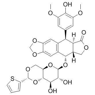 SMILES: | O=C1OC[C@]2([H])[C@H](O[C@H]3[C@@H]([C@H]([C@@H]([C@@H](CO4)O3)O[C@@H]4C5=CC=CS5)O)O)C6=C(C=C7OCOC7=C6)[C@@H](C8=CC(OC)=C(O)C(OC)=C8)[C@]21[H] |