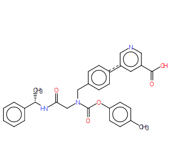 Chemical Name: | 5-[4-[[[2-[[(1S)-1-Cyclohexylethyl]amino]-2-oxoethyl][(4-methylphenoxy)carbonyl]amino]methyl]phenyl]-3-pyridinecarboxylic acid |