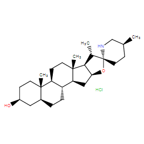 SMILES: | C[C@H]1CC[C@@]2([C@H]([C@H]3[C@@H](O2)C[C@@H]4[C@@]3(CC[C@H]5[C@H]4CC[C@@H]6[C@@]5(CC[C@@H](C6)O)C)C)C)NC1.Cl |