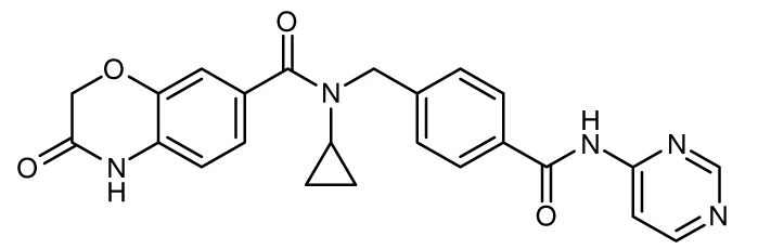 Chemical Name: | 2H -1,4-Benzoxazine-7-carboxamide, N -cyclopropyl-3,4-dihydro-3-oxo-N -[[4-[(4-pyrimidinylamino)carbonyl]phenyl]methyl]- (ACI) |